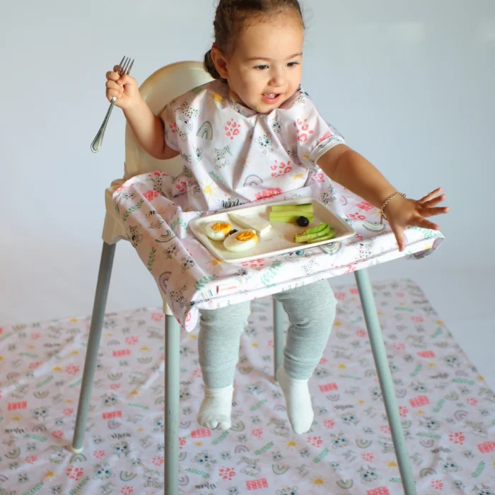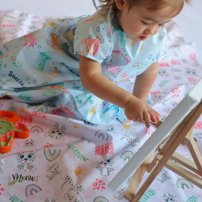 Mammam's waterproof floor/tablecloth is a versatile product that makes life easier for babies and mothers. It covers a large area with a size of 145x150 cm and collects the food that falls on the floor in a hygienic way, especially at mealtimes, and facilitates cleaning. With its non-slip construction, it stays stable and turns feeding time into a worry-free experience. This cover is suitable for use not only at meal times, but also at playtime. Babies can comfortably spend time with paint, water or different play materials while playing on the floor; Thanks to its waterproof construction, spilled liquids or paints can be cleaned up instantly, so both babies can play freely and order in the house is maintained. Durable, easy to clean and long-lasting, this cover provides a practical use both at home and outside. Whether during meals or while playing, the Mammam waterproof floor/tablecloth is designed for your baby's comfort and your convenience.