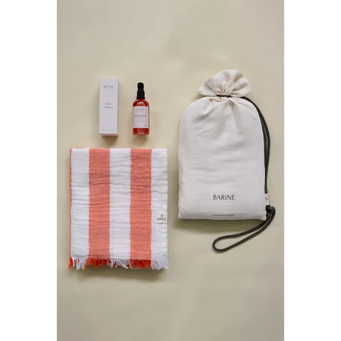 Product Code: striped-gauze-pestemal-hediye-seti-coral