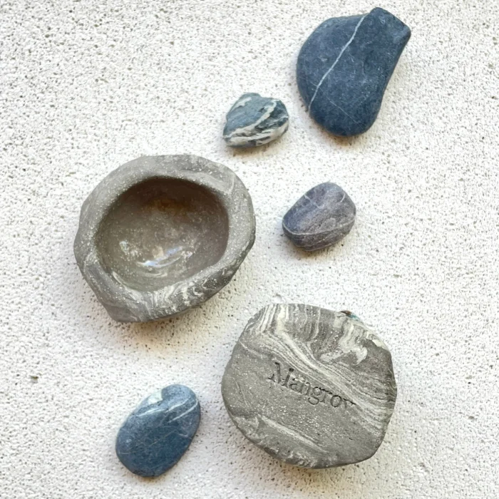 Completely handmade, stoneware sauce holder in stone form and patterns.