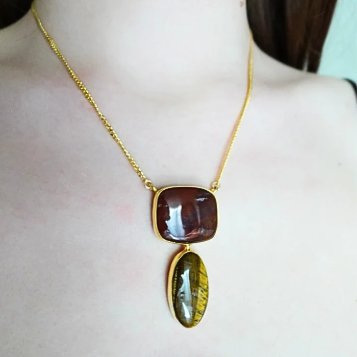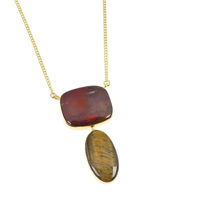 Product: Cara Jasper And Tiger Eye Natural Stone Silver Necklace - Earth Element