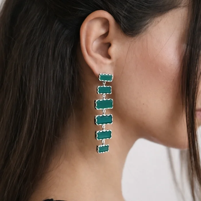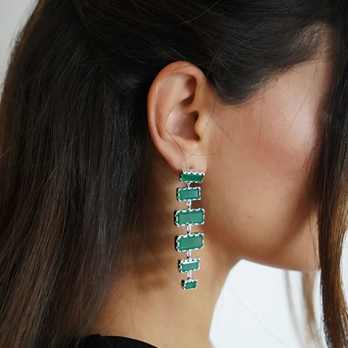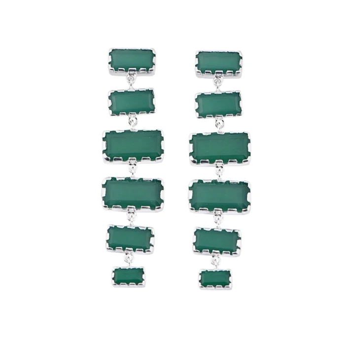 Silver Earrings | Green Agate Stone
