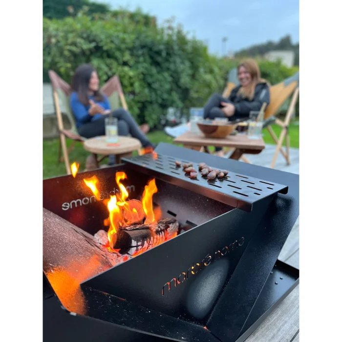 It has a design that is easily installed without screws and any fastening apparatus with its interlocking system. It is elektrostatik paint coating, 3 mm iron sheet plates. There is an ashtray tray at the bottom and there are four wheels under it. It has a stainless steel grill on which you can cook foods such as chestnuts and corn.