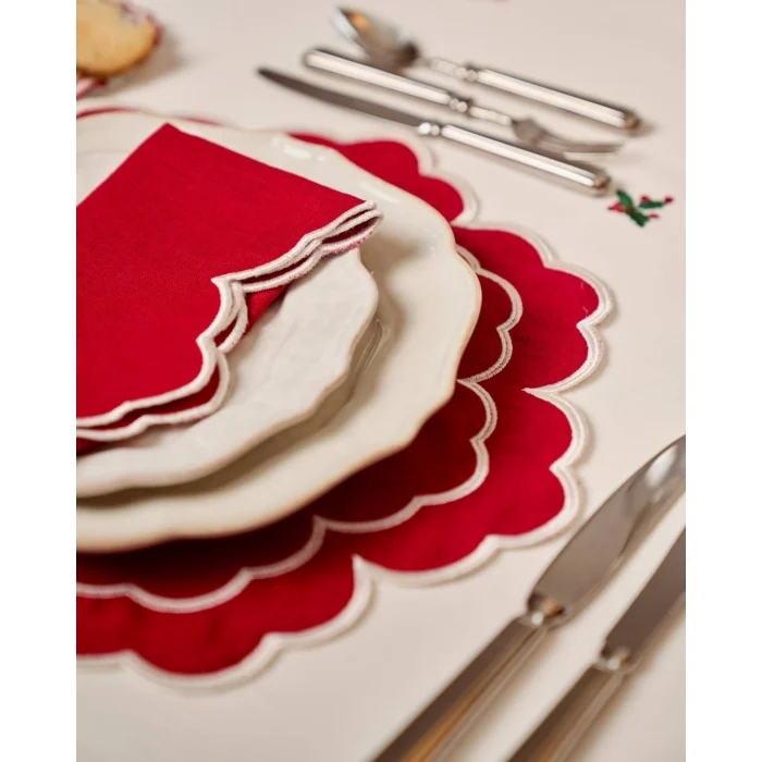 Mariaida Home İris Placemat Napkin Set Red White
