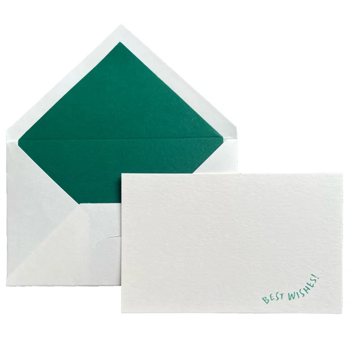 There are 10 greeting cards and envelopes in a box. It is made of FSC certified, high quality imported paper. It is carefully hand-packed with an embossed detailed envelope and a model-specific envelope liner.