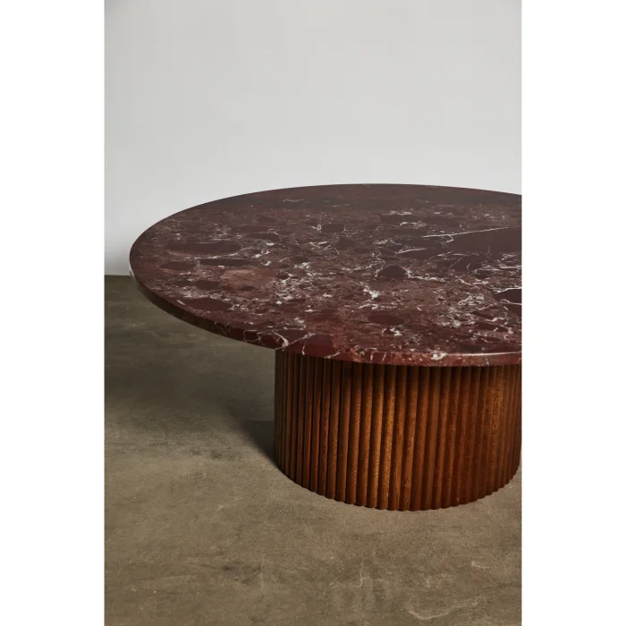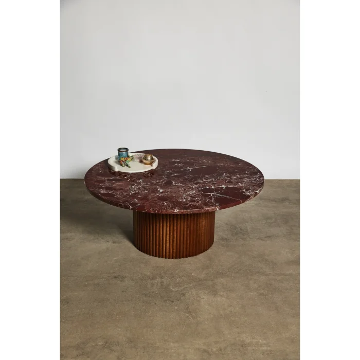 The coffee table offered by Marmony Concept combines elegance and durability with its wooden joint table leg. Offering an aesthetic appearance with four different marble top options, this product can also be supplied in different sizes. Its standard dimensions are 100 cm in diameter and 40 cm in height, but special size requests are also accommodated.
