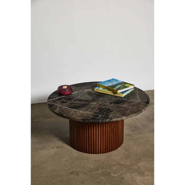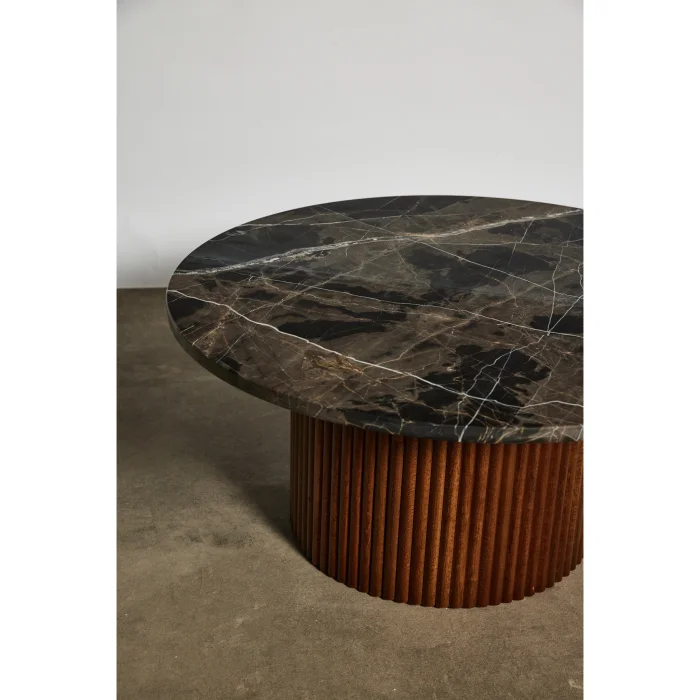 The coffee table offered by Marmony Concept combines elegance and durability with its wooden joint table leg. Offering an aesthetic appearance with four different marble top options, this product can also be supplied in different sizes. Its standard dimensions are 100 cm in diameter and 40 cm in height, but special size requests are also accommodated.