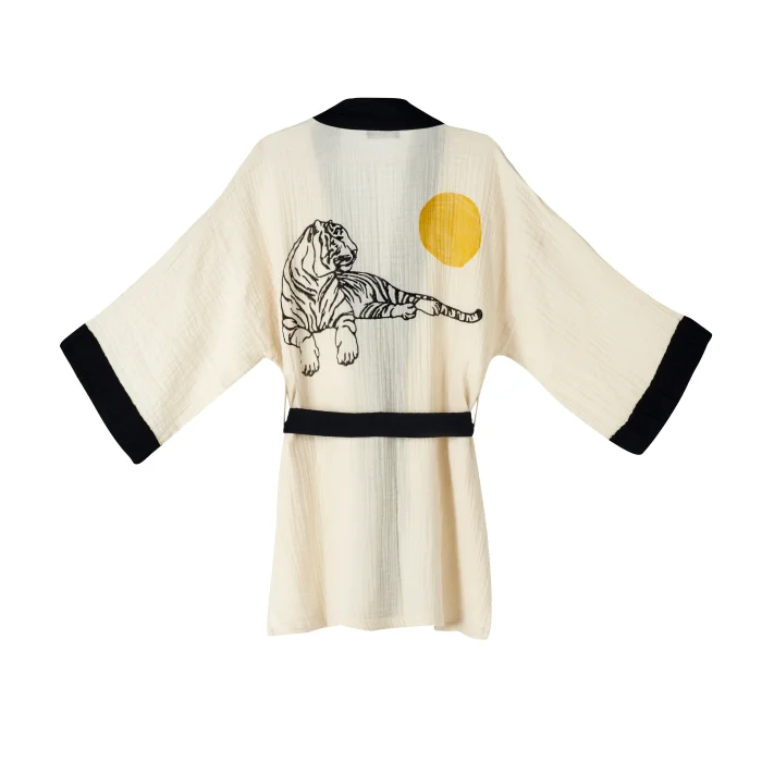 Lotus Tiger Muslin Kimono