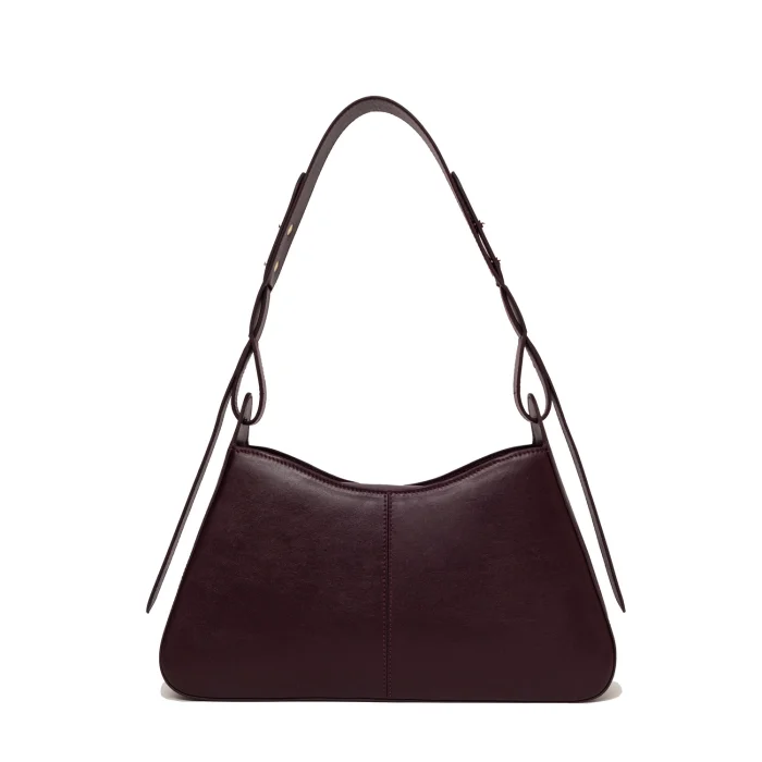 Hand-painted edges, light gold nickel-free hardware, magnetic closure at open top, one interior pocket, adjustable shoulder strap.
