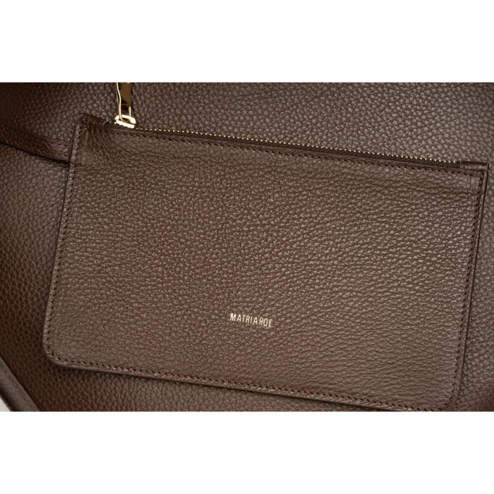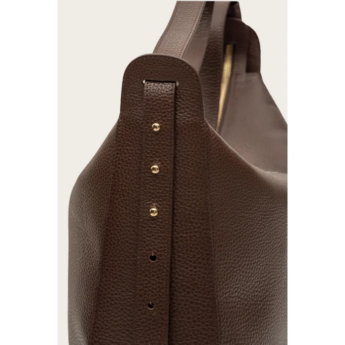 Hand-painted edges, light gold nickel-free hardware, magnetic closure at open top, one interior pocket, adjustable shoulder strap.