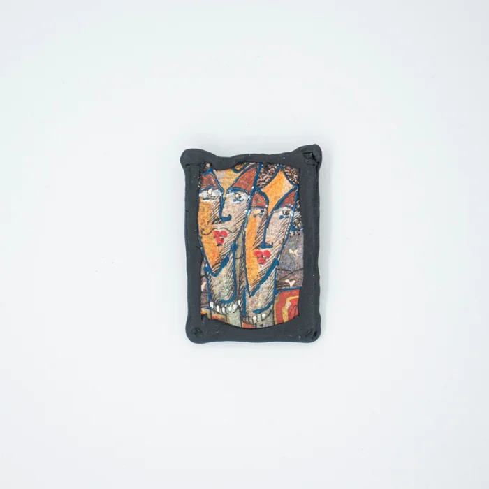 Handmade Mavitan drawings on Hahnemühle paper The frame is shaped with polymer clay Each brooch has a stopper as a closure type. You can leave the tip of the needle inside or outside the garment. Placing it right in the middle of the collar is another suggestion for use. Brooches are sent in their own special box with a gift package. This artist-made brooch is a part of Illustrated Brooches à la Bihrat Serie. Each handmade and unique piece has a certificate with the artist's signature.
