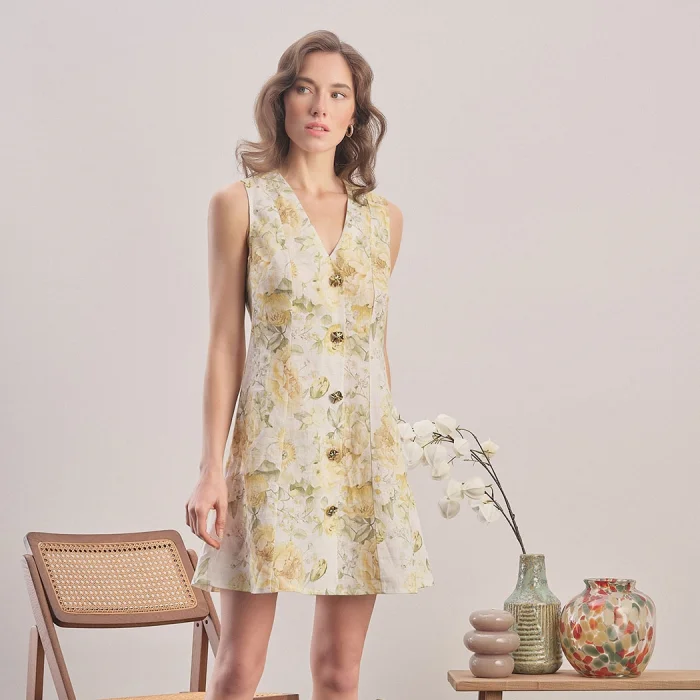 Product: Yellow Meadow Floral Linen Mini Dress