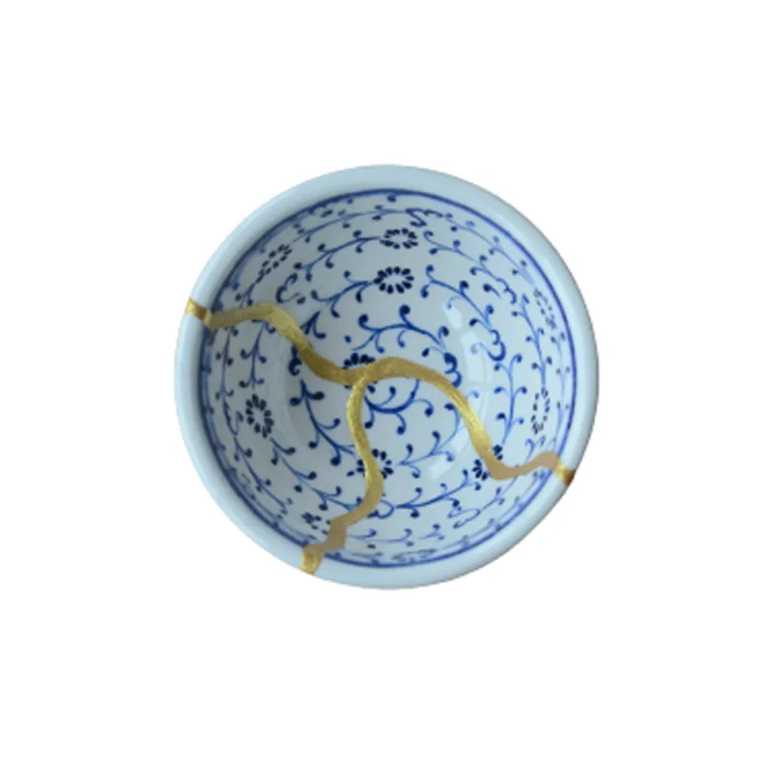 Ceramic bowl, handmade in Iznik, Turkey. The bowl is not broken. As seen on images, lines are drawn on the surface of the bowl by golden paint. It has crackles at ceramic glaze which gives it a texture.