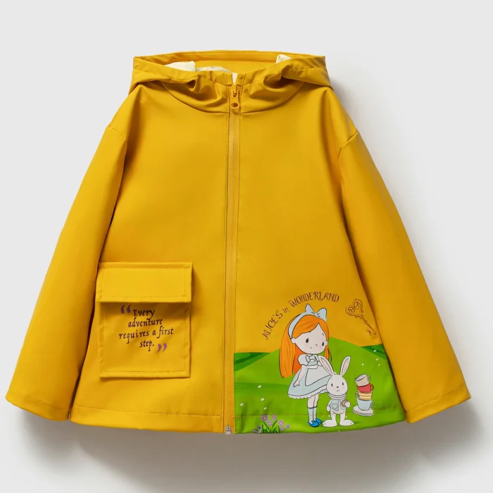 Product: Alice In Wonderland Printed Rubber Waterproof Cotton Lined Girls' Raincoat