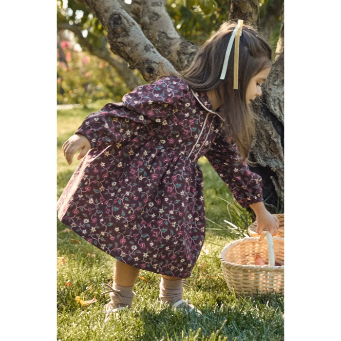 Product: Floral Patterned Velvet Piping Cotton Dress