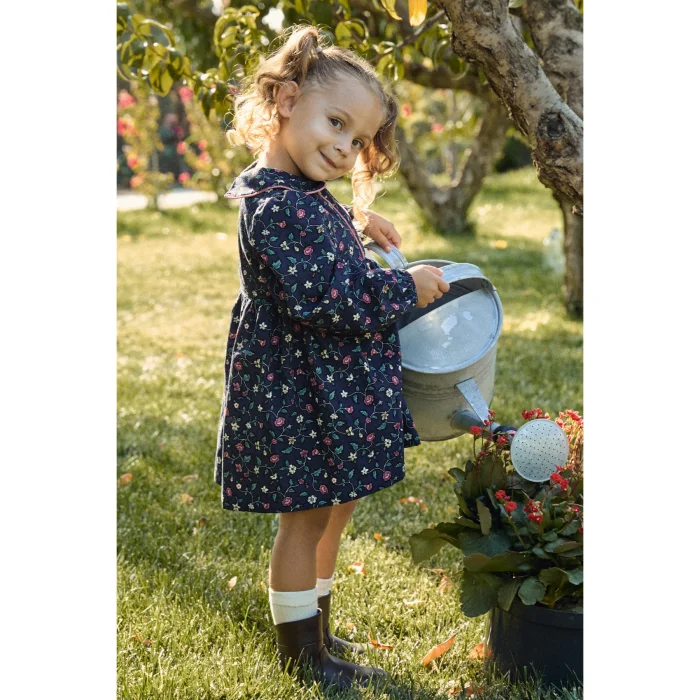 Product: Floral Patterned Velvet Piping Cotton Dress