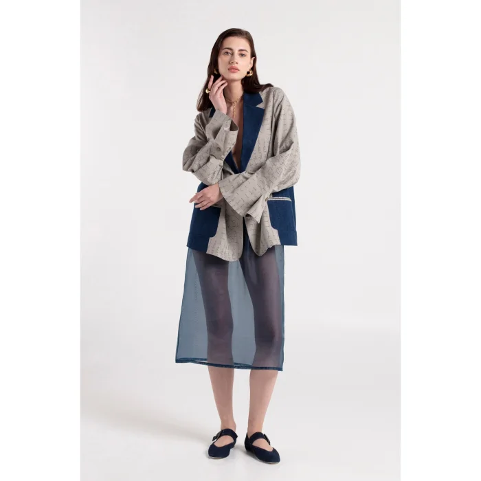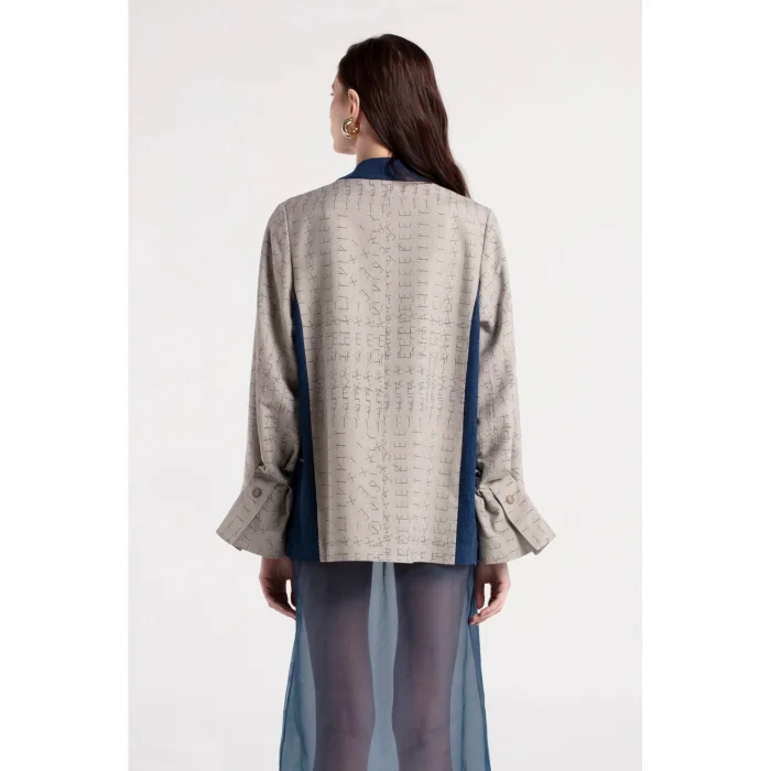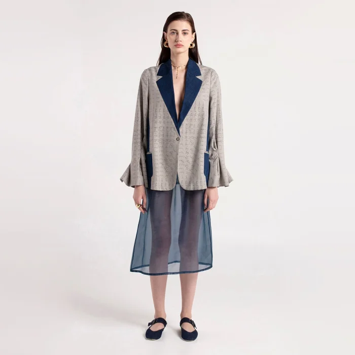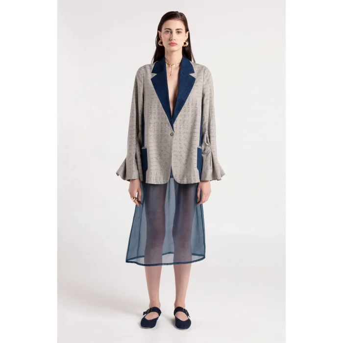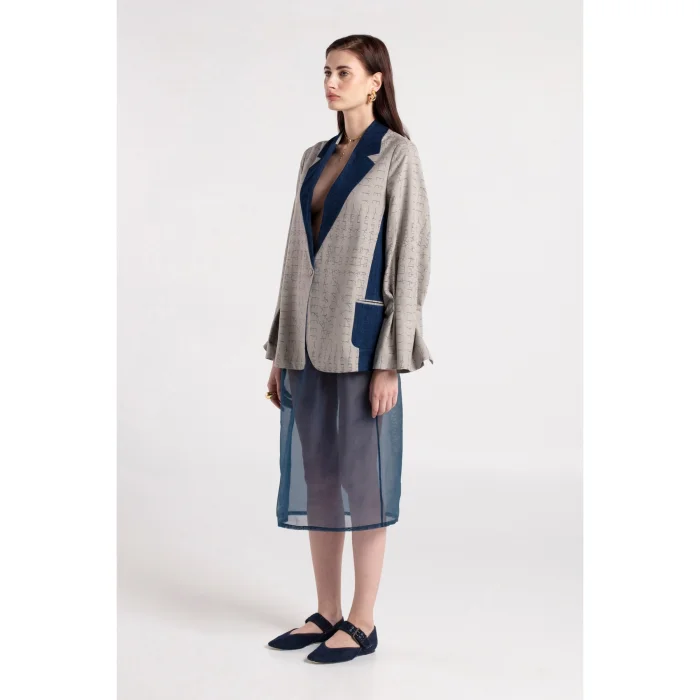 Product: Oz - Denim Detailed Pleated Sleeve Gray Jacket
