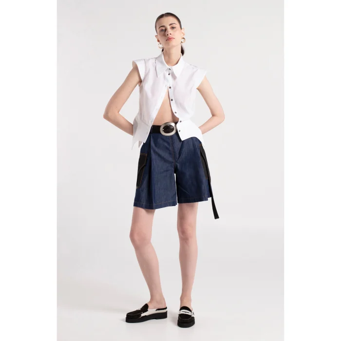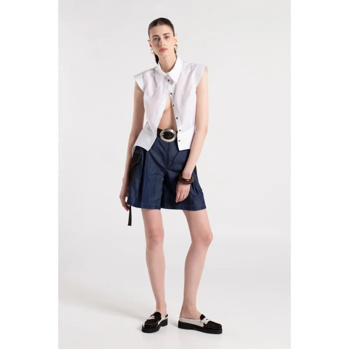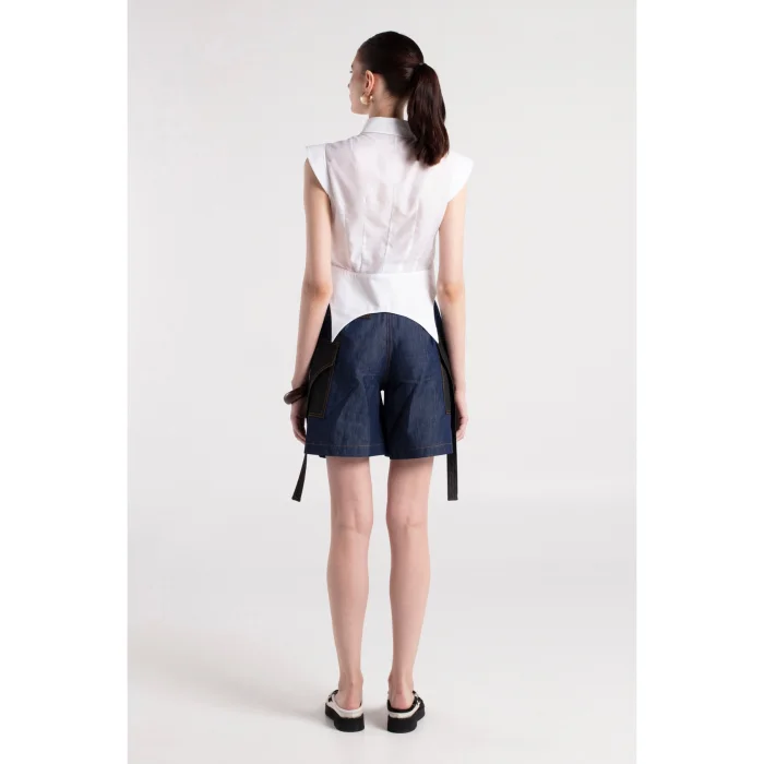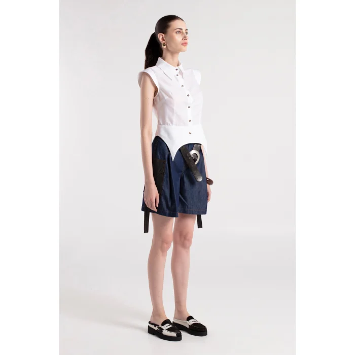 Product: Sade - White Cotton Shirt With Shoulder & Waist Details