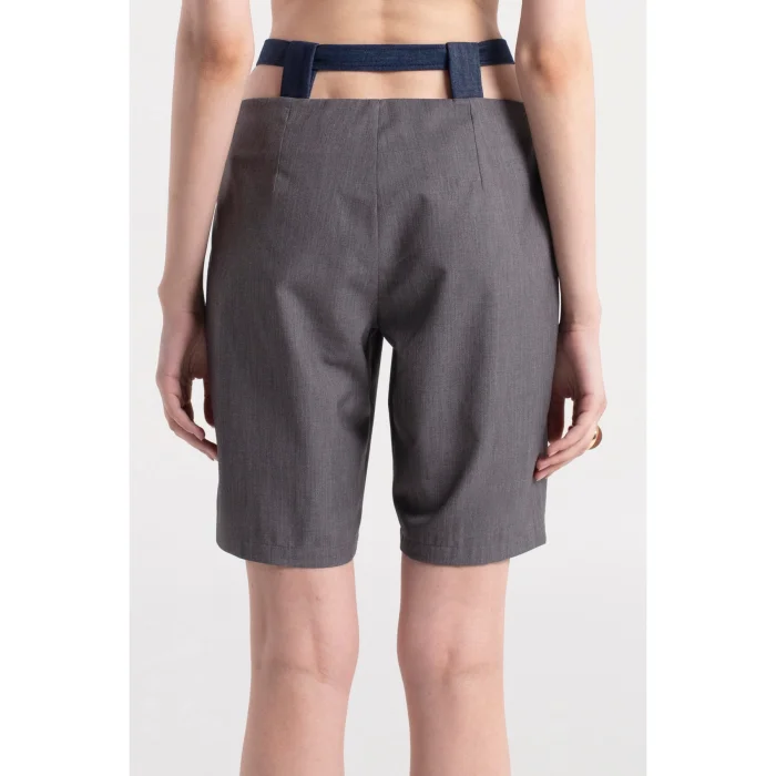 Ub - Low Waist Gray Capri Pants With Denim Belt