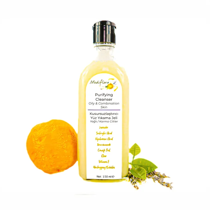 Product Description What is the Purifying Cleanser? Our uniquely formulated cleanser, produced with the aromatic water of our estate-grown lavender gently cleanses the skin from dirt and makeup with herbal cleansers, replenishes moisture with hyaluronic acid, purifies the pores with salicylic acid, helps to maintain the skin's sebum balance with niacinamide, orange peel and clove oils. The result is purified, balanced and super soft skin. · Purifies and prevents clogged pores with salicylic acid · Moisturizes with hyaluronic acid & lavender water · Beautifies skin tone with its strong antiseptic and antioxidant herbal formula · Niacinamide for strengthening the skin barrier, reducing pore size appearance and redness · Uplifts with its natural and pleasant scent How To Use Shake before use. Massage a sufficient amount of product into wet skin and rinse. The product is concentrated, three to four drops are sufficient for a single use. For maximum benefit from the active ingredients, it is recommended to leave it on the skin for a while before rinsing. Ingredients Lavandula Angustifolia (Lavender) Flower Water, Decyl Glucoside, Sodium Hyaluronate, Sorbitol, Maltodextrin, Salicylic Acid, Caprylic/Capric Triglyceride, Sodium Stearoyl Lactylate, Citrus Aurantium Dulcis (Orange) Peel Oil, Tocopheryl Acetate (Vitamin E), Niacinamide, Eugenia Caryophyllus (Clove) Bud Oil, Xanthan Gum, Caprylhydroxamic Acid (and) Glyceryl Caprylate (and) Glycerin, Benzyl Alcohol (and) Dehydroacetic Acid 150 ml
