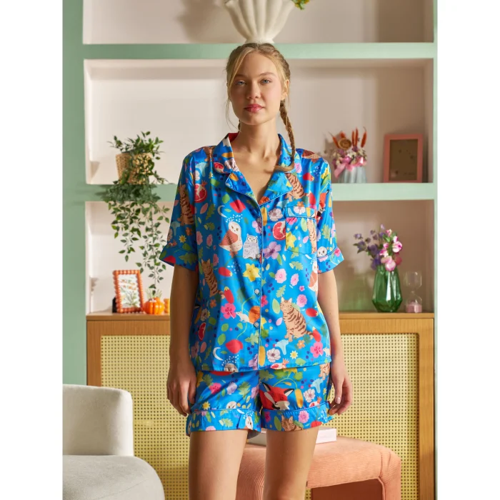 Product: Satin Short Sleeve Nightgown Florus Pattern Bottom Top Set