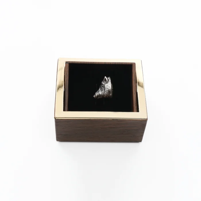 It is finely crafted with 925 sterling silver. It is sent with a walnut wood veneer box.
