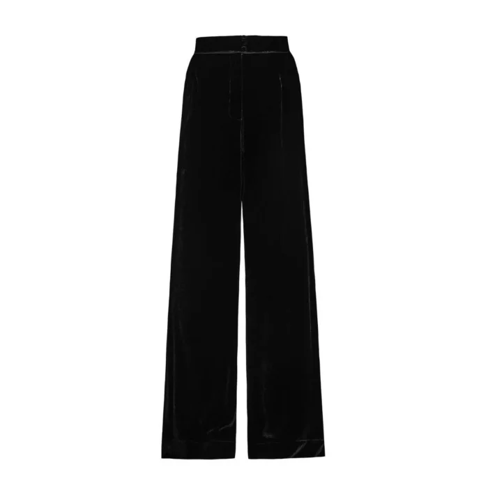 Product: High Waist & Wide Leg Black Velvet Trousers