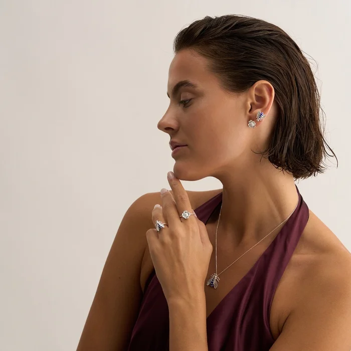 Product: Bee Earring - Small White / Navy