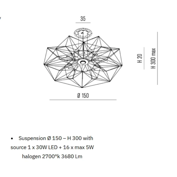 Altatensıone Pendant Lamp 1L Chrome150X300 Cm Led 1X30W
