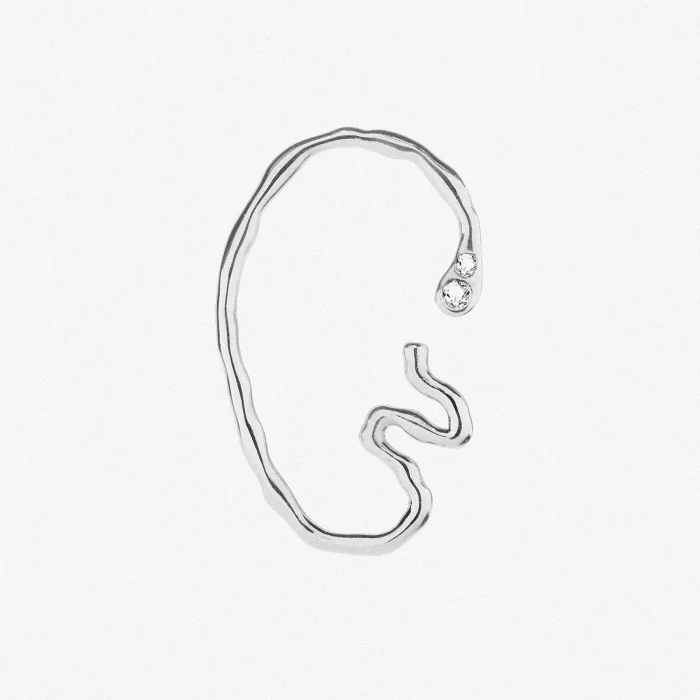Wrap your ear with a touch of boldness. Jane earcuff wraps around your ear like a snake shining with two stones. It is made of 925 sterling silver and with an 18k gold plated option. Designed to turn heads.