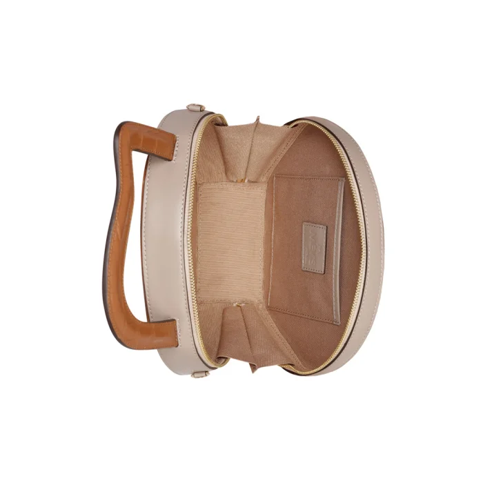 Interrior pocket with Mev's Atelier embossed log.