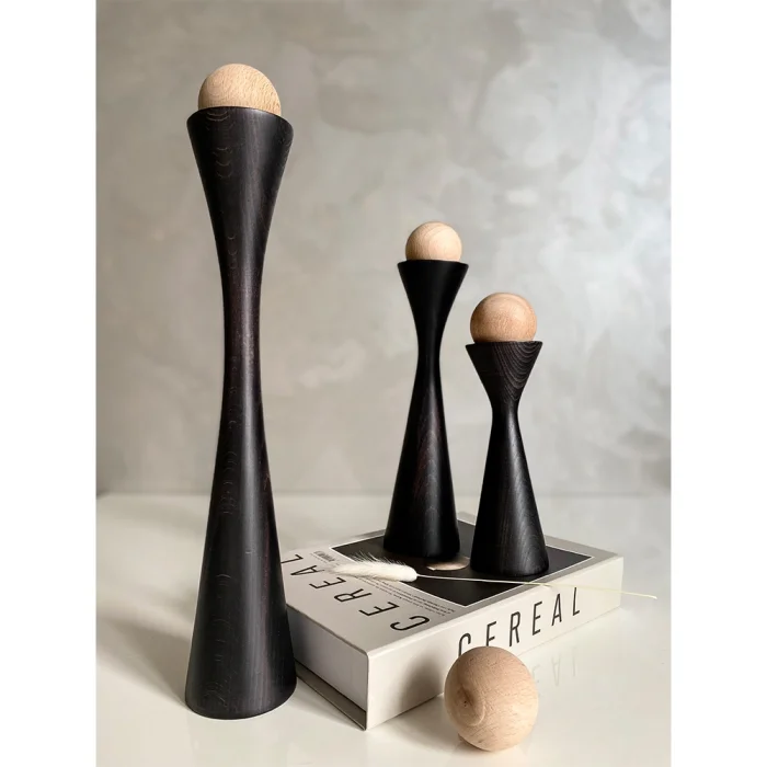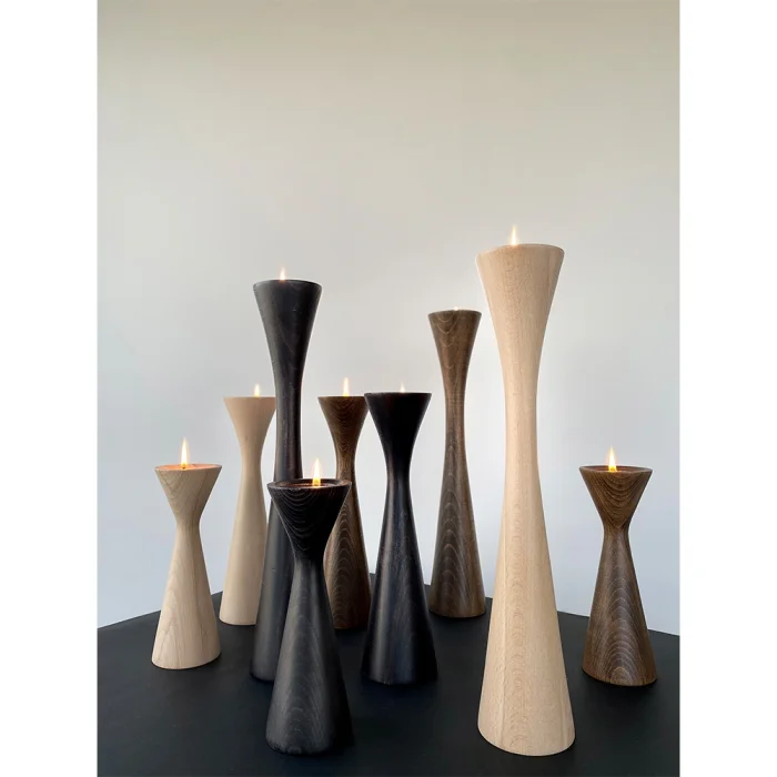 Glamour candle holder set is produced entirely by hand using solid wood.