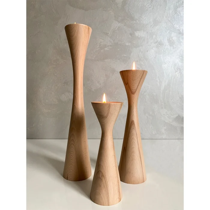 Glamour candle holder set is produced entirely by hand using solid wood.