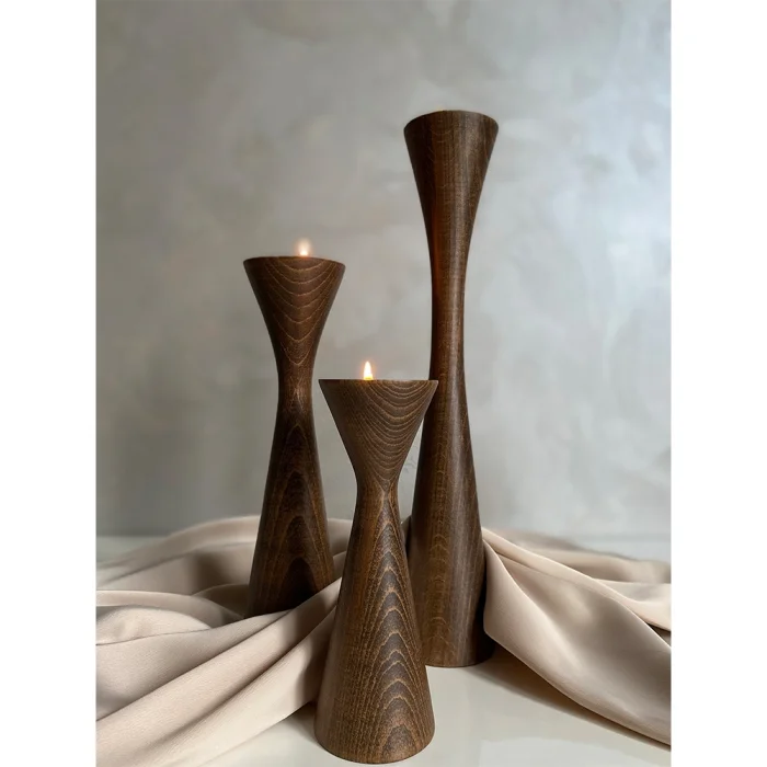 Glamour candle holder set is produced entirely by hand using solid wood.