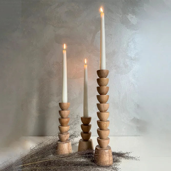 The height of the candle holders is 34 cm - 21 cm - 15 cm.