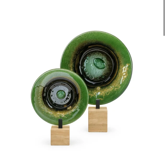 Product: Green And Black Glass Disc Fusion Object Set Of Two