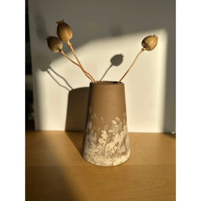 Stoneware ceramic handmade vase. The outer surface is matte textured and the interior is glazed with transparent glaze.