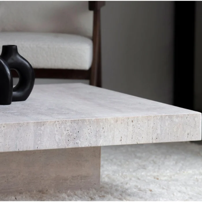Size: 120 x 80 x 40 cm Travertine is a natural and durable rock that is shaped by the fire of volcanoes and bears the traces of thousands of years. This material adds value to your home both aesthetically and functionally. As Miarik Design, we offer you simple and stylish travertine table models by carefully processing travertine. Travertine stones are patiently processed by hand under harsh conditions. Our quality craftsmen painstakingly cut, shape, polish and put the finishing touches on these materials. Thus, we preserve the natural and organic forms of travertine and create furniture designs suitable for your home. Since the stone is a natural material with texture, color tones and vascular pathways, it makes each product unique and unique. In addition, the surface of the stone is matte and has unique tiny pores. These differences are an indicator of the naturalness of travertine. Please place an order taking these into account. If you wish, the pores of the stone can be closed, and you can have matte or polished options of the surface with a special order. Our recommendation is that it be porous and in matte form. It will add a natural elegance to your home.