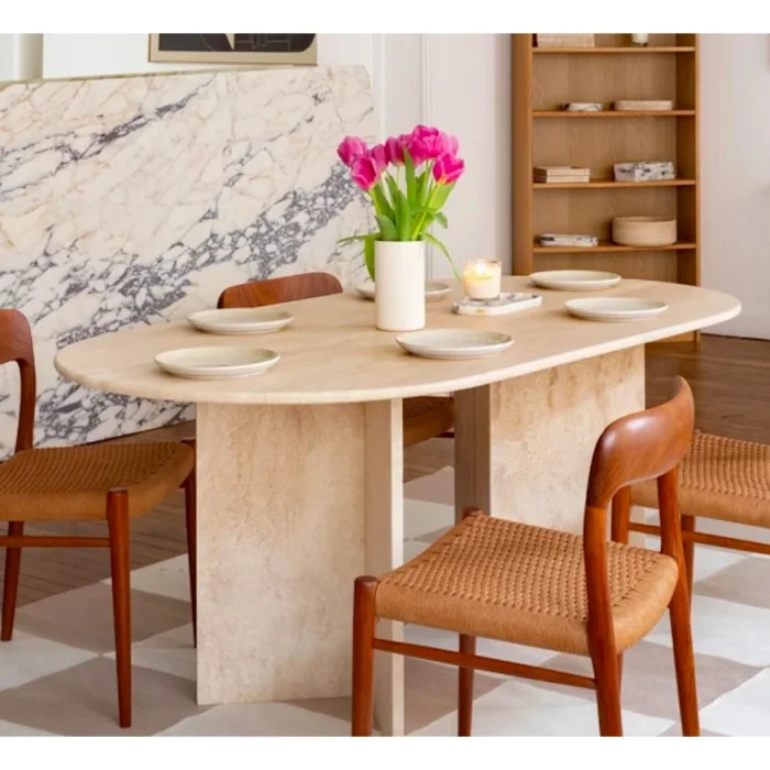 Product: V Ayak Oval Travertine Marble Dining Table