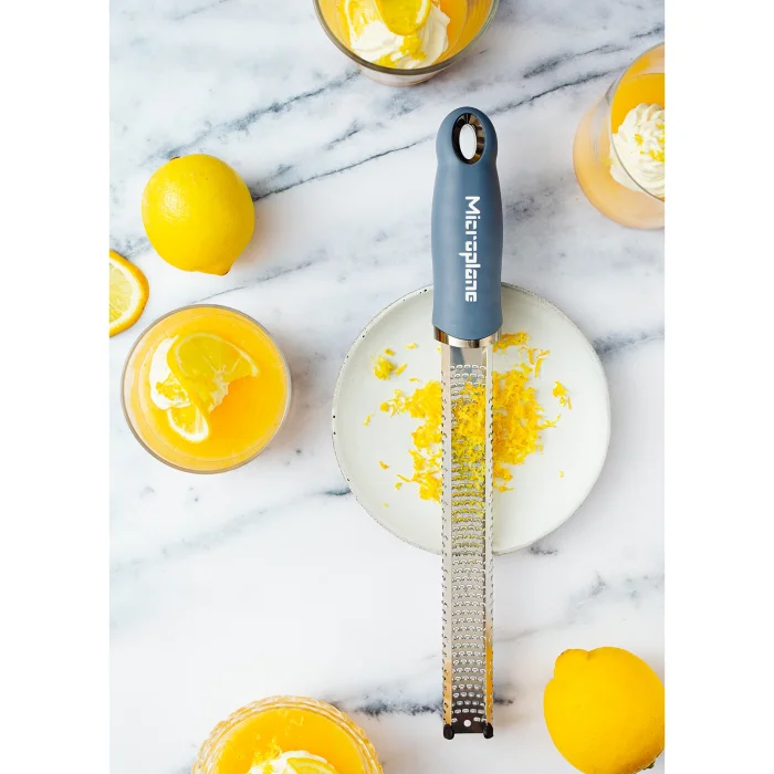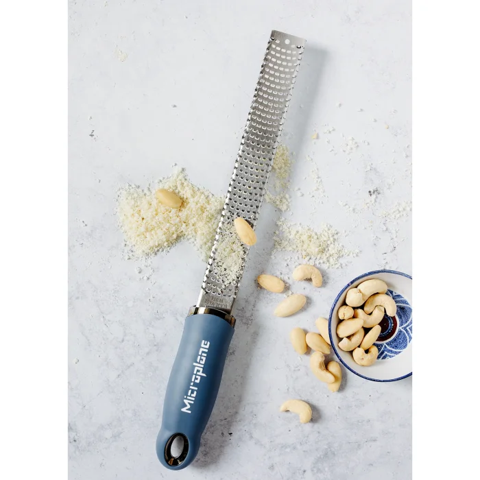 The original, iconic Premium Classic Zester, characteristically long and narrow revolutionized grating due to its ultra-sharp, photo-etched stainless-steel blade - made in USA. Featuring 400 micro-teeth, it is perfect for all citrus fruits, hard cheese, chocolate, ginger, garlic, nutmeg, truffle, spices, nuts and more.