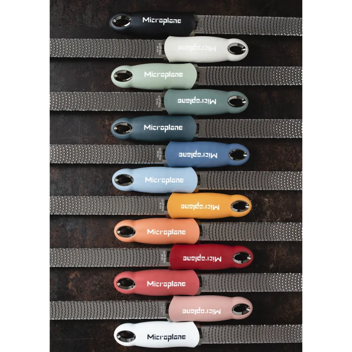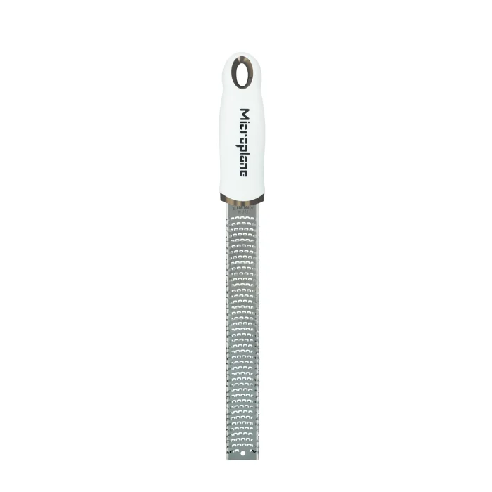 The original, iconic Premium Classic Zester, characteristically long and narrow revolutionized grating due to its ultra-sharp, photo-etched stainless-steel blade - made in USA. Featuring 400 micro-teeth, it is perfect for all citrus fruits, hard cheese, chocolate, ginger, garlic, nutmeg, truffle, spices, nuts and more.
