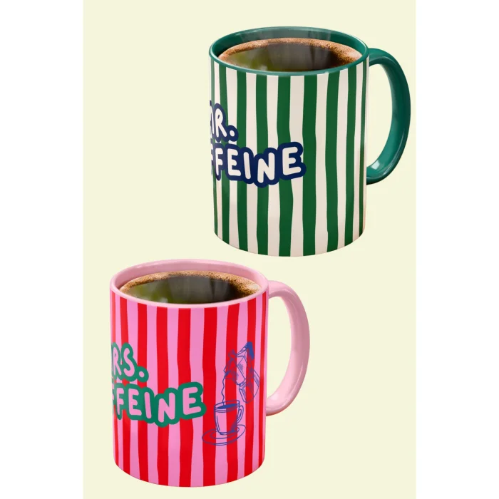 Product: Mrs. And Mr. Caffeine Themed Porcelain Mug Set - 2 Coffee Cups For Couples