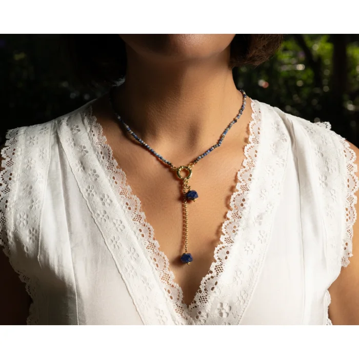 Maris necklace carries the blue of the deep seas and the sky on you, with the wisdom and peaceful energy of lapis, inner power is always with you... 14K gold plated 925 silver necklace length (open) :58 cm