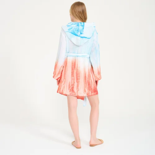 Miespiga Women's Tie Dye Muslin Bathrobe is produced from 100% cotton first class yarn on special looms in Denizli.