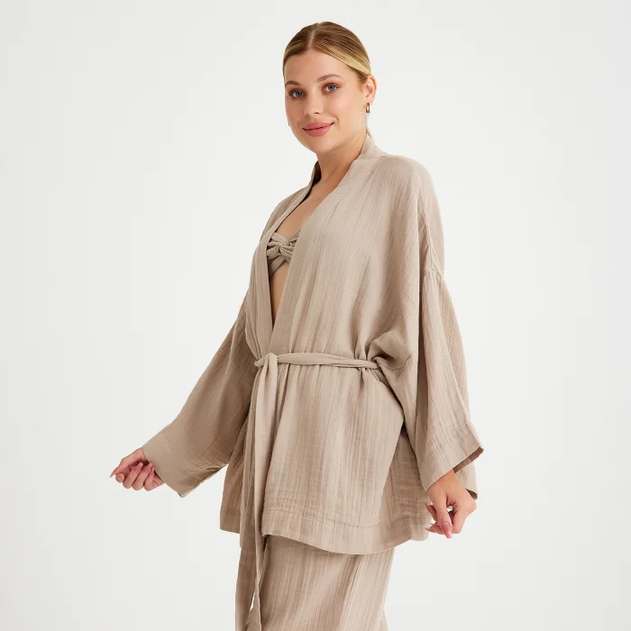 Product: Miespiga 100% Cotton Woven Waist Belted Mini Women's Kimono Kaftan