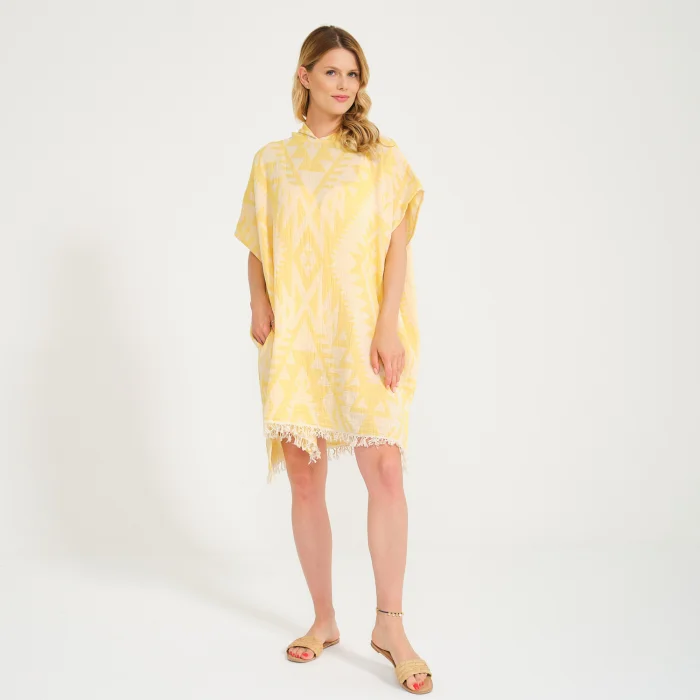 Miespiga Peshtamal Ponchos are produced from 100% cotton first class yarn on special weaving looms in Denizli.