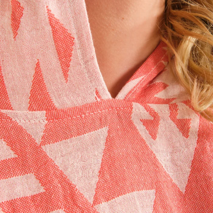 Miespiga Peshtamal Ponchos are produced from 100% cotton first class yarn on special weaving looms in Denizli.