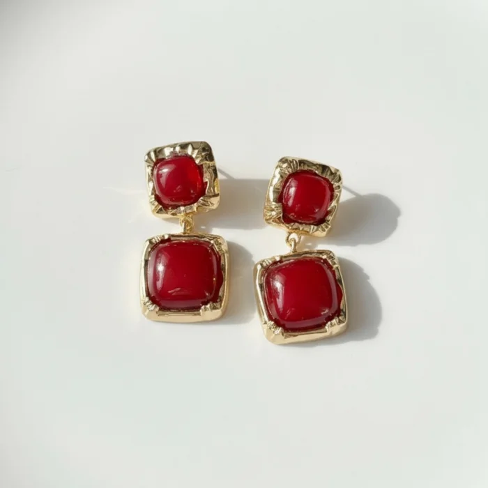 Rouge Double Earrings offer a modern and eye-catching design that combines the bold energy of red with golden tones. It is especially ideal for those who want a strong yet elegant touch.