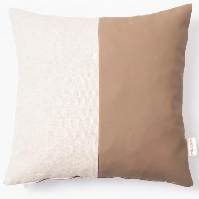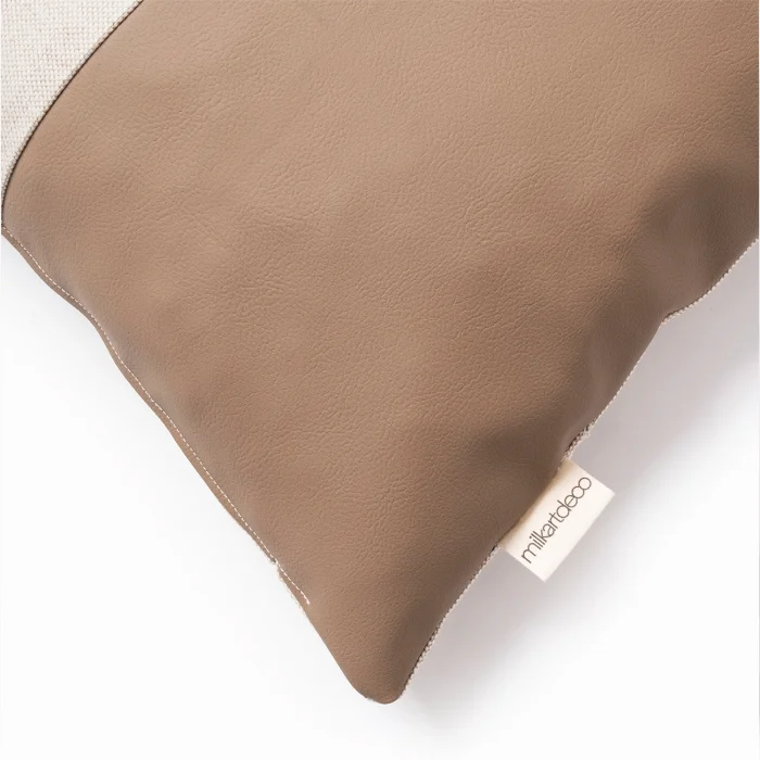 CONTENTS: Linen and 1. Grade Faux Leather SIZE: 45*45cm INSTRUCTIONS FOR USE: DRY CLEANING WITH MINERAL ESSENCE NO BLEACH IS USED IRONING AT 110ºC ROLLER WASHING IS NOT DONE