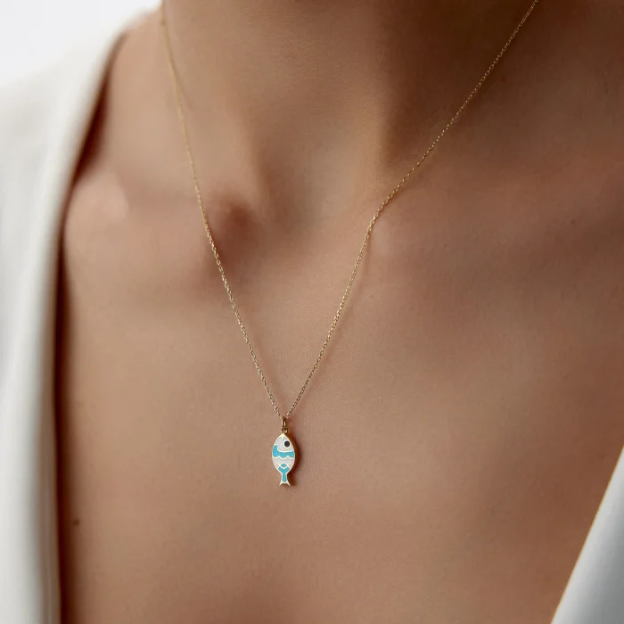 Product: 14k Gold Enamel Modern Fish Necklace