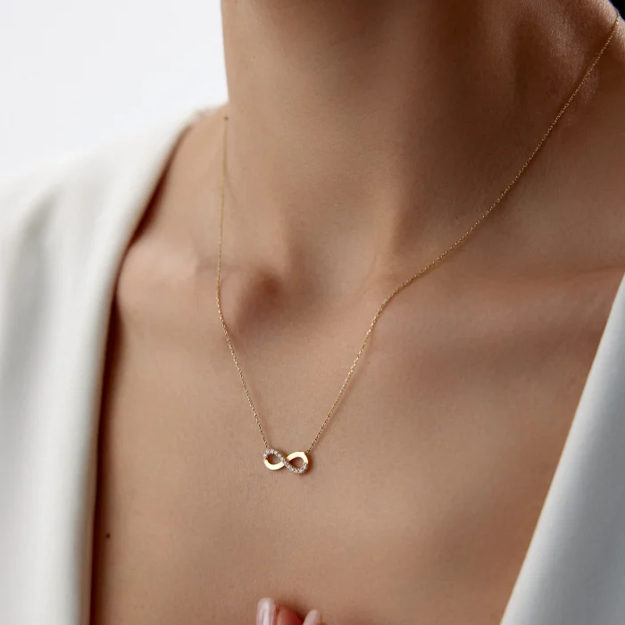 14k Gold Modern Stone Infinity Necklace